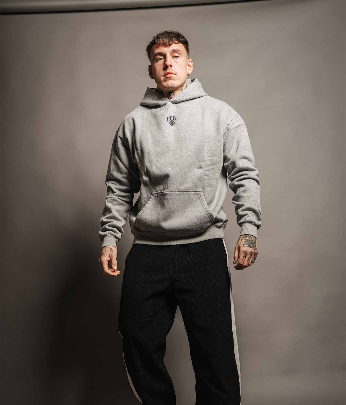 High quality basics - The 360g / m² strong, gray basic hoodie is clean and can be combined with any streetwear outfit. The gray hoodie has the Tellem logo as a central front print and our Message "Boldly share what you believe in" as subtle backprint . Our own clothing production in Portugal ensures the finest workmanship down to the last detail - noticeable & long-lasting quality.
