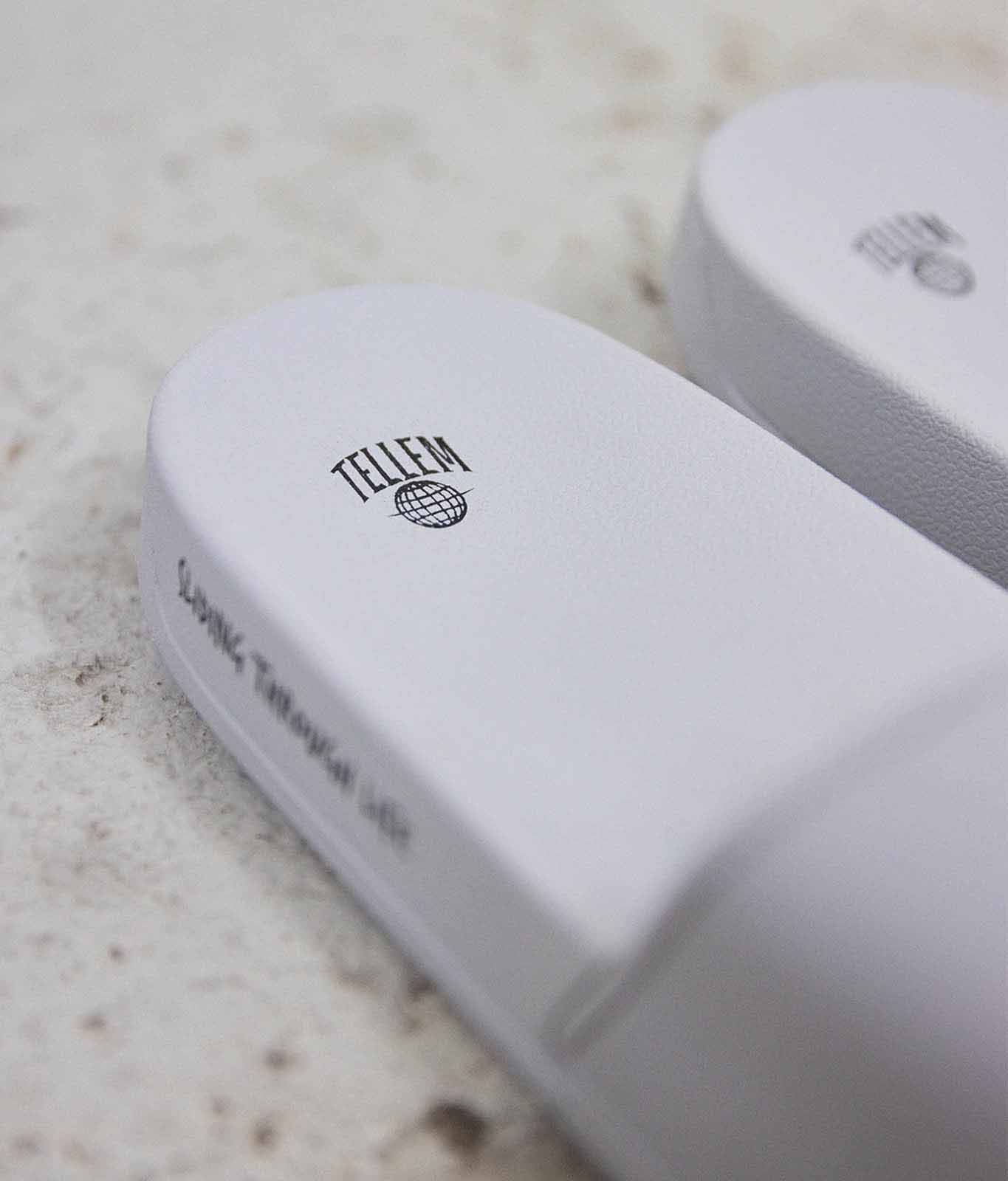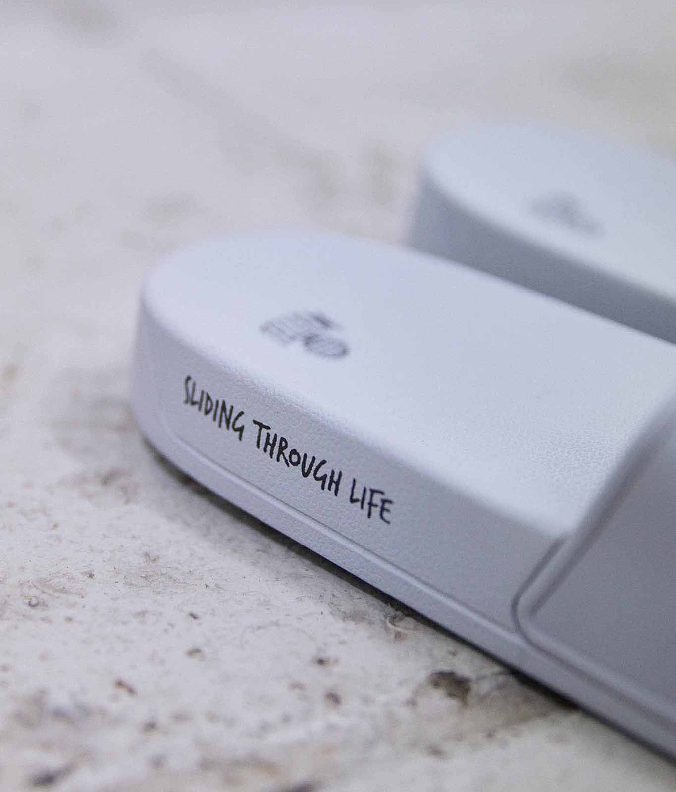 Finishing: 3D Tellem logo on the tongue, Tellem logo printed on the heel and "Sliding through life" printed on the outside.