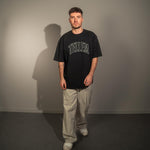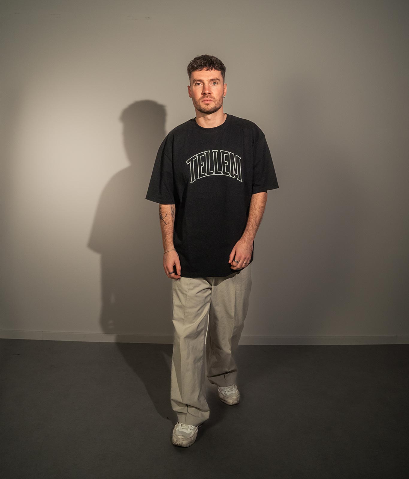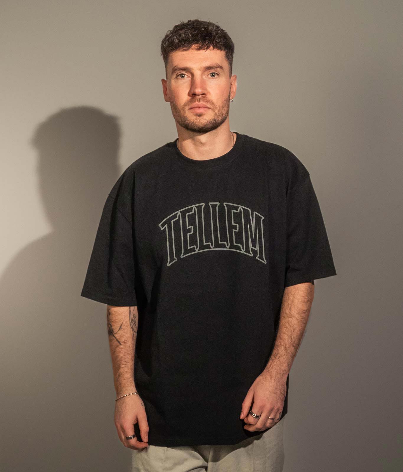 Tellem Outline – Das 220g/m² kräftige schwarze T-Shirt mit der dunkelgrauen Outline ist ein besonders edles Design. Unsere eigene Bekleidungsproduktion in Portugal sorgt für feinste Verarbeitung bis ins letzte Detail – spürbare & langlebige Qualität.