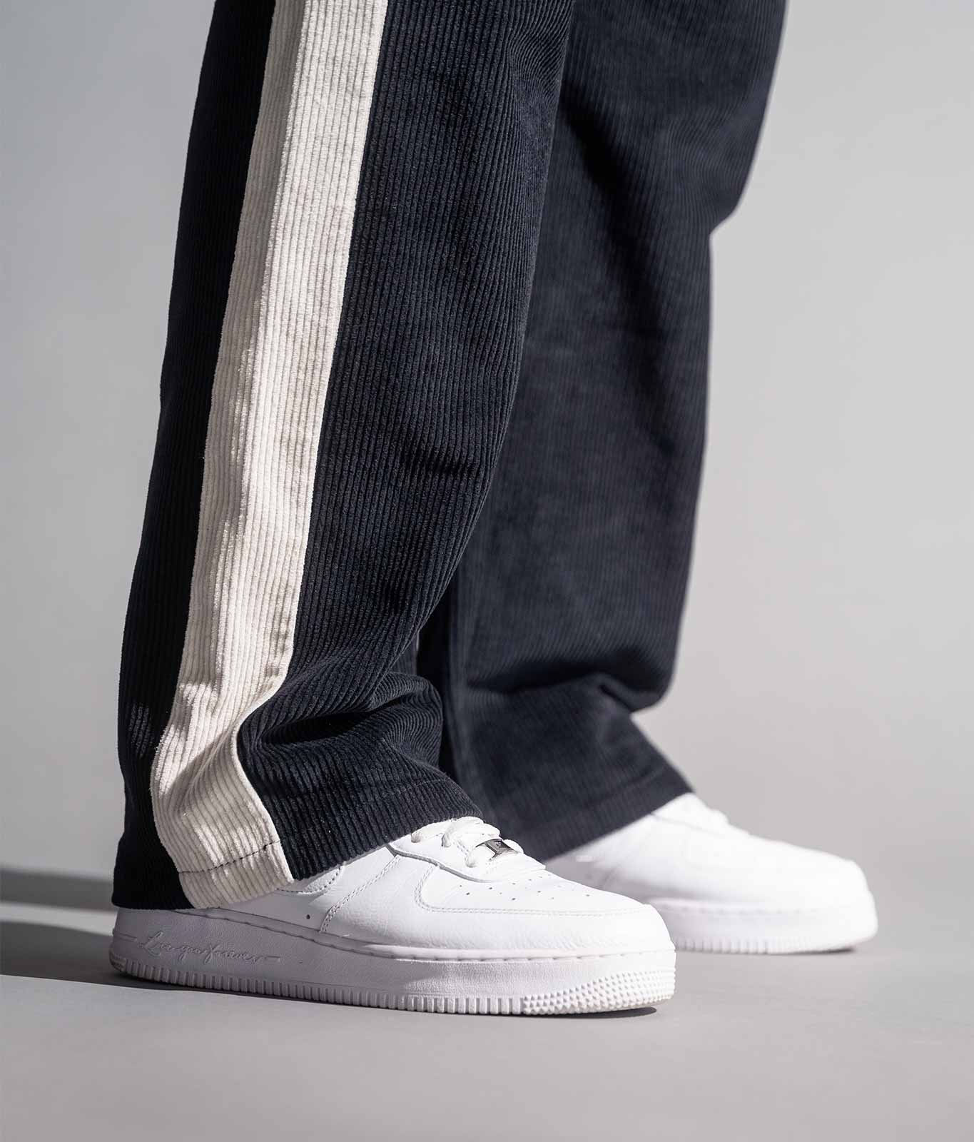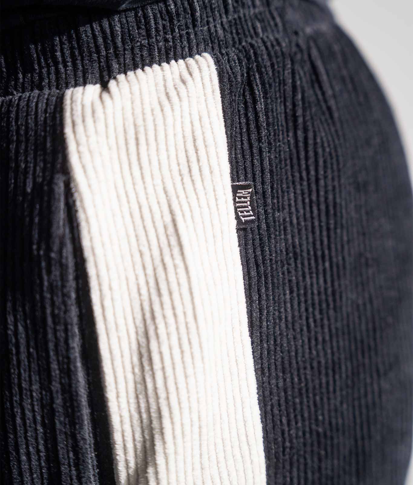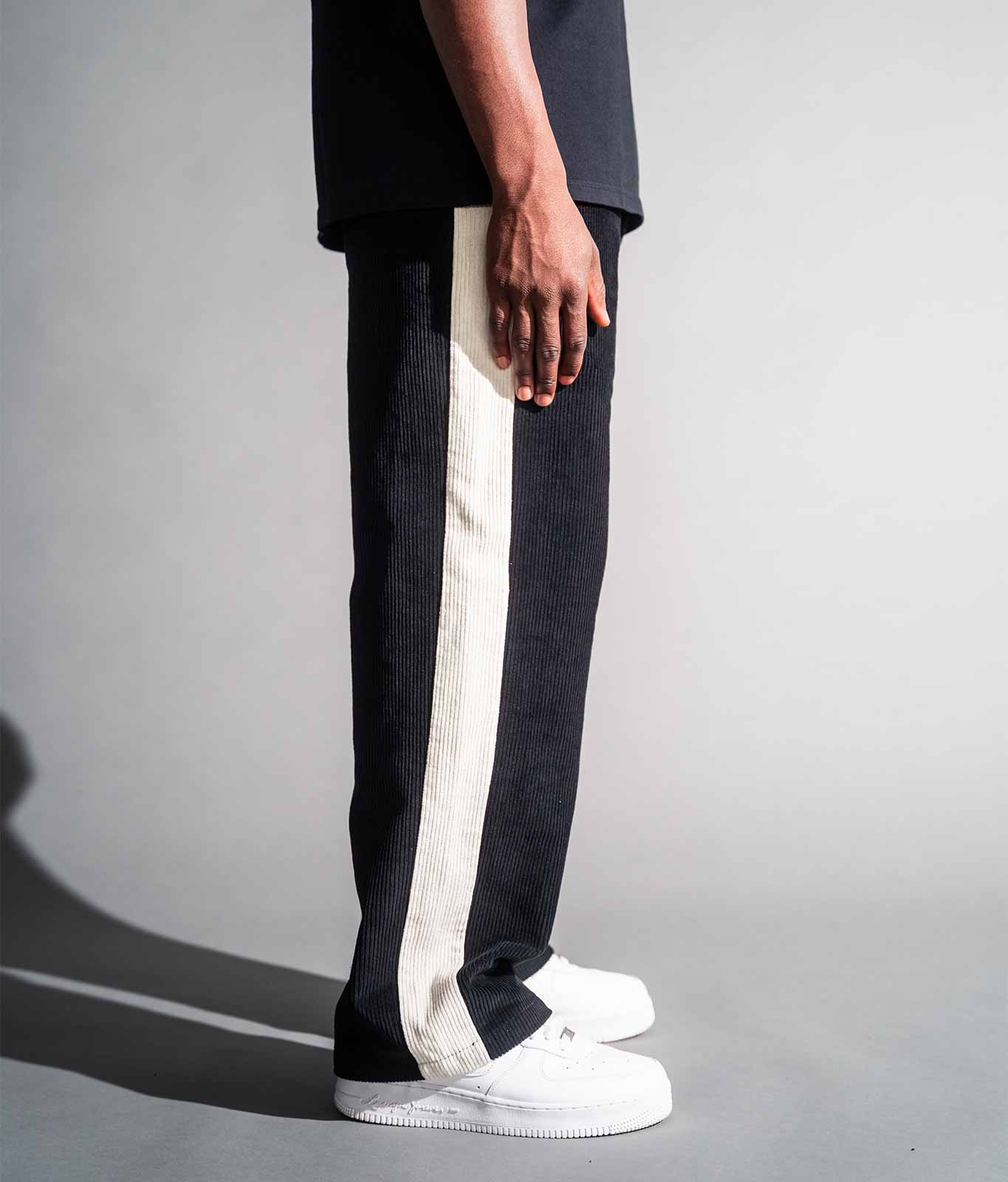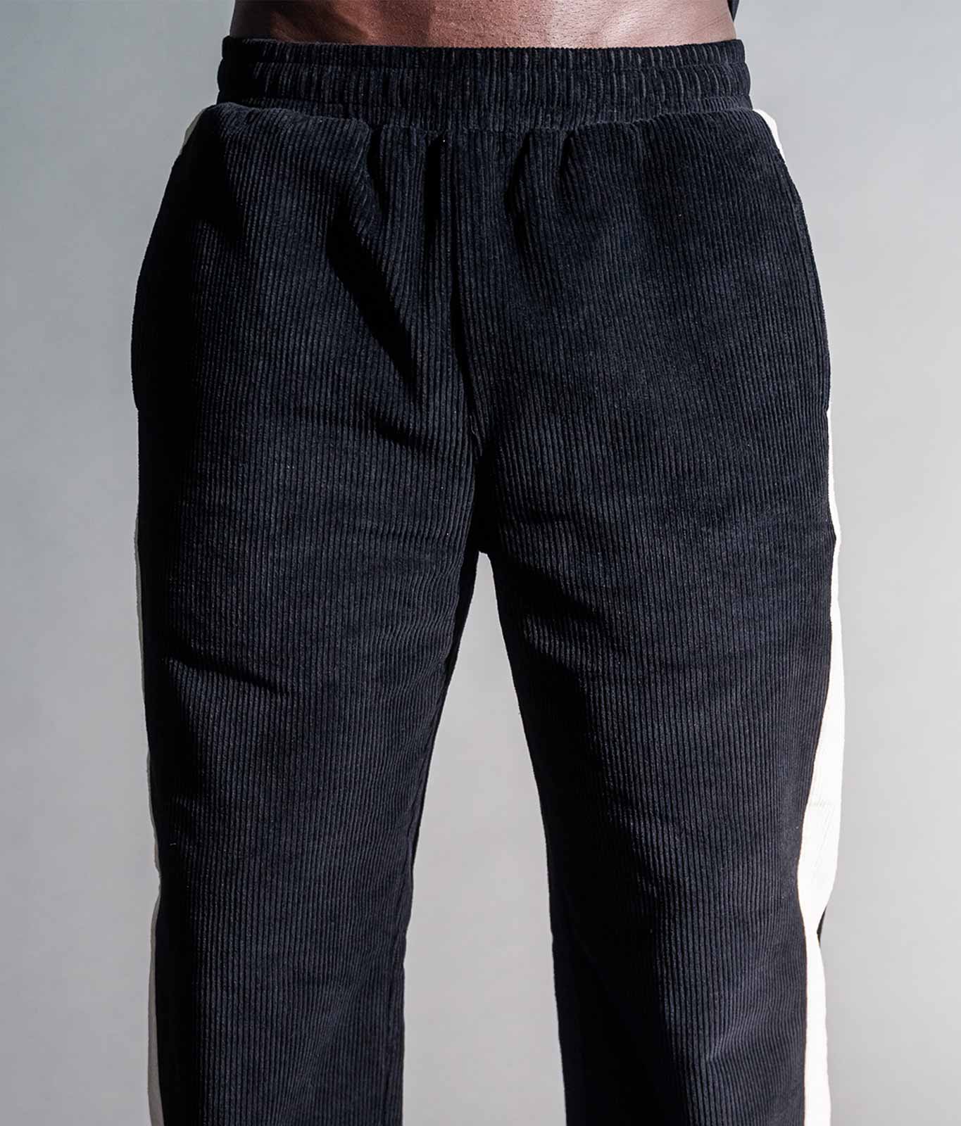 • Eine exklusive schwarze Cordhose die urbanen Luxus neu definiert.