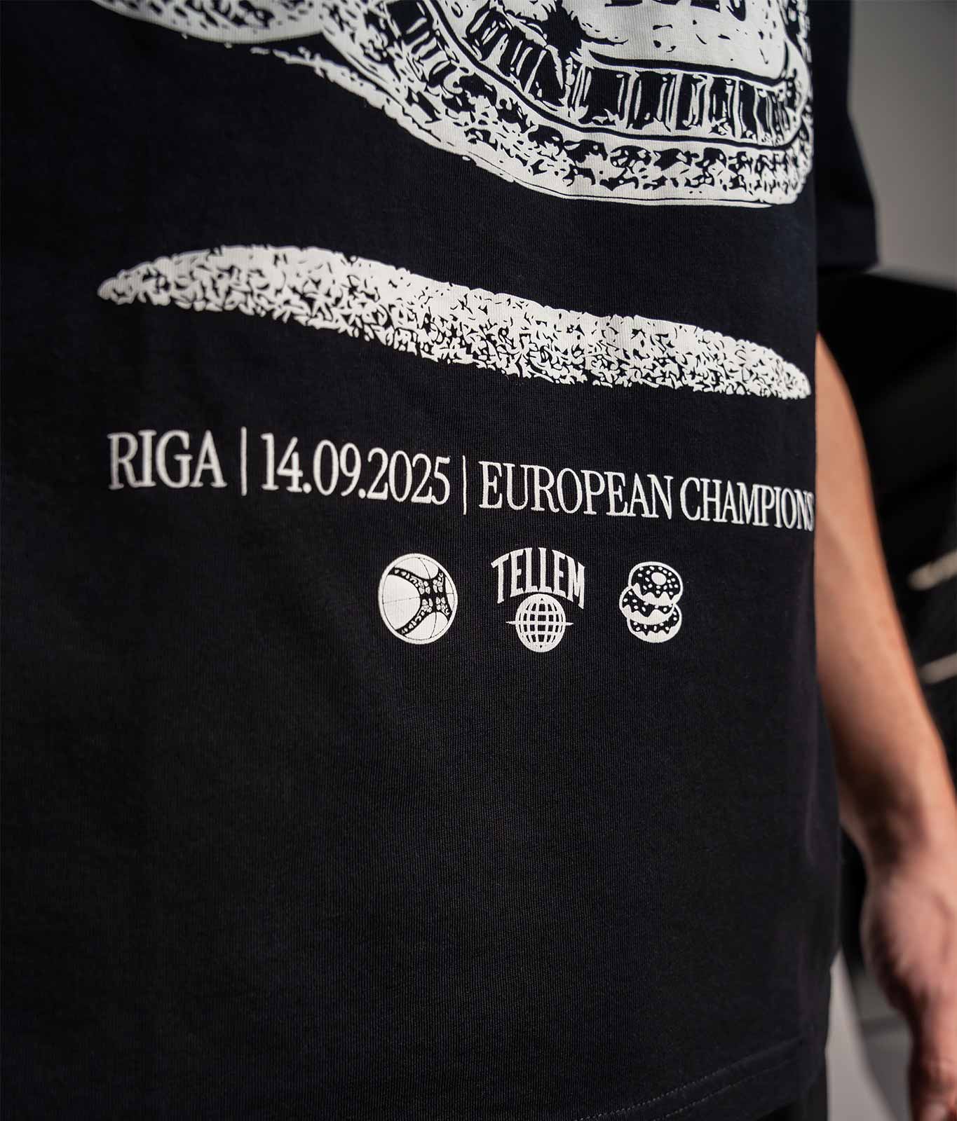Wir sind absolut verdient EUROPAMEISTER 2025! Der weiße Print auf dem 320g/m² kräftigen Hoodie besteht aus einem epischen Championship Ring und kleinen Logos mit vielen Details wie: dem offiziellen Spielball, Donuts für die vielen 100 Punkte Games, dem Ort/Datum an dem Geschichte geschrieben wurde und dem GER auf der Ring-Außenseite.