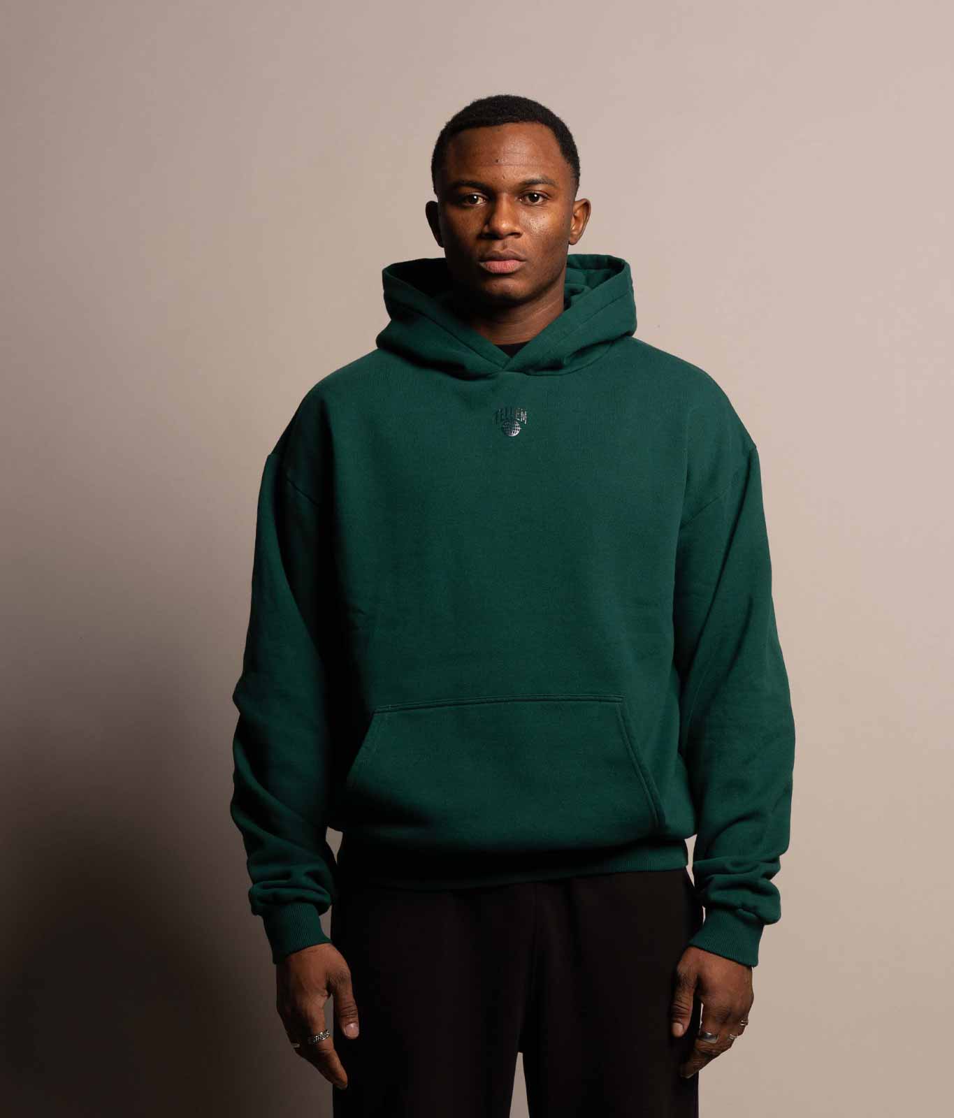 Details: 350g/m², leichter Oversize-Fit, lässige Schultern, starke Kapuze