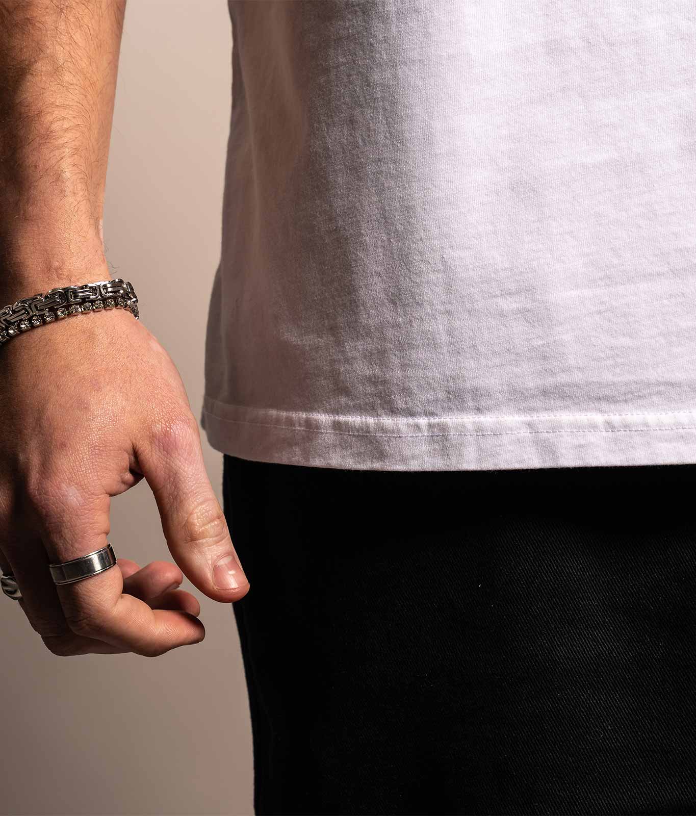Gefertigt aus 200gsm Baumwolle, bietet das Shirt einen angenehmen Griff, einen sauberen Fall und genau die Stabilität, die man von einem hochwertigen T-Shirt für den täglichen Einsatz erwartet. Der leichte Oversize-Fit mit lässigen Schultern sorgt für eine entspannte Silhouette, die vielseitig kombinierbar ist – im Alltag, im Büro oder unterwegs.