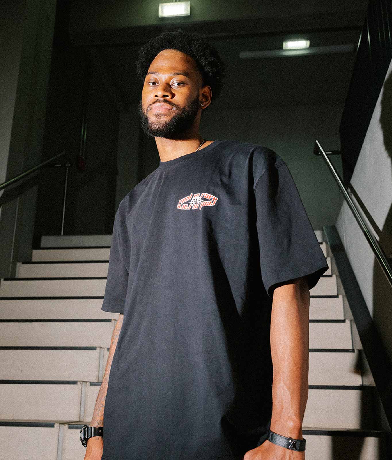 LIMITED auf 150 Stück – Entscheide dich für das besondere und 220g/m² kräftige T-Shirt von uns und dem amerikanischen Profibasketballer Aljami Durham von den Veolia Towers Hamburg!