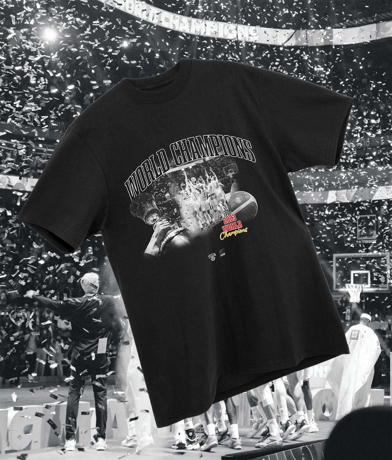 Gemeinsam mit dem Deutschen Basketball Bund & Bildern von Basti Sevastos und Lucas Kröger/DBB kombinieren wir diesen historischen Titelgewinn mit höchster T-Shirt-Qualität. Wir möchten, dass Deine Erinnerungen und Emotionen verbunden mit dem Weltmeister-Sommer für immer bleiben!